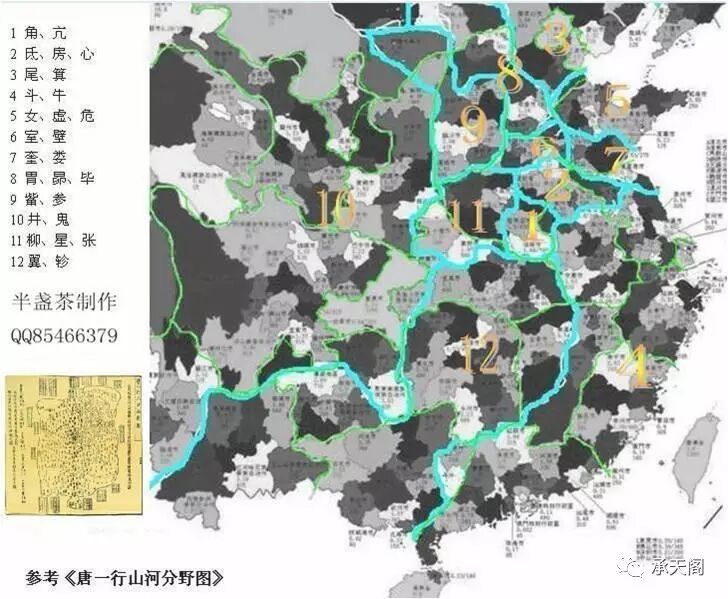分野是指星空区域和地面州国之间的对应关系,就是把天上的星宿分别指配于地上的州国,或者说根据地上的区域来划分天上的星宿,于是二者互为分野。星宿的分野最初是按列国来分配,后来又以州来分配,也有以十二星次为纲再配以列国的。按星宿列国分野:《汉书·地理志》云:“宋地,房、心之分野也。按星宿州县分野:《史记·天官书》:房、心,豫州。房、心,原先是宋的分野,大概是今河南东部及山东、江苏、安徽之间。据《晋书·天文志》记载:房宿、心宿的分野包括颖川、汝南、沛郡、梁国、淮阳等地,汝南、颖川、淮阳首当其冲。宋国在春秋战国时代,其地域是比较广大的,它的版图最大时当跨有东汉沛国、梁国、楚国(国治在今徐州市)山阳郡、济阴郡一带,即今河南东部、江苏西北部、安徽北部和山东西南端之间,面积约有十万平方公里,皆膏腴之地。豫州:东接充、徐、扬,西以荆山与雍、梁接界,南以荆山和荆州分界,北至黄河与冀、充分界,今河南全境、山东西部、湖北北部,皆古豫州的境地。面积约有四十万平方公里。豫州“厥土惟壤,下土坟垆,厥田惟中上,厥赋错上中。”《星宿分野专论》:房,腹也,中抵者也,中阳木。房宿:淇水、河水之间,河内郡。生白顺连的中阳木,土木相守,建植之所也。淇水在河南省北部,古为黄河支流,源出淇山。南流至今汲县东北淇门镇入黄河。河内郡,中国古以黄河以北为河内。二十八宿度数:房五。二十八宿与二十八山对应的分野:唐天文学家李淳风说:“以《禹贡》 山川配二十八宿”。其山各在十二星次之分,分野有灾,则宿与山相感,而见祥异。房宿 对应“壶口山”。关于壶口山,一说在山西吉县西南七十里黄河边。《吉州志》:河势北来,至此全倾于西崖,奔放而下,约五六百尺,悬注潆旋,有若壶然。一说为山西长治(长子)县东南壶关山(壶山)。一说为山西浮山县西南壶口山(又名蜀山)。----------------------------------------------